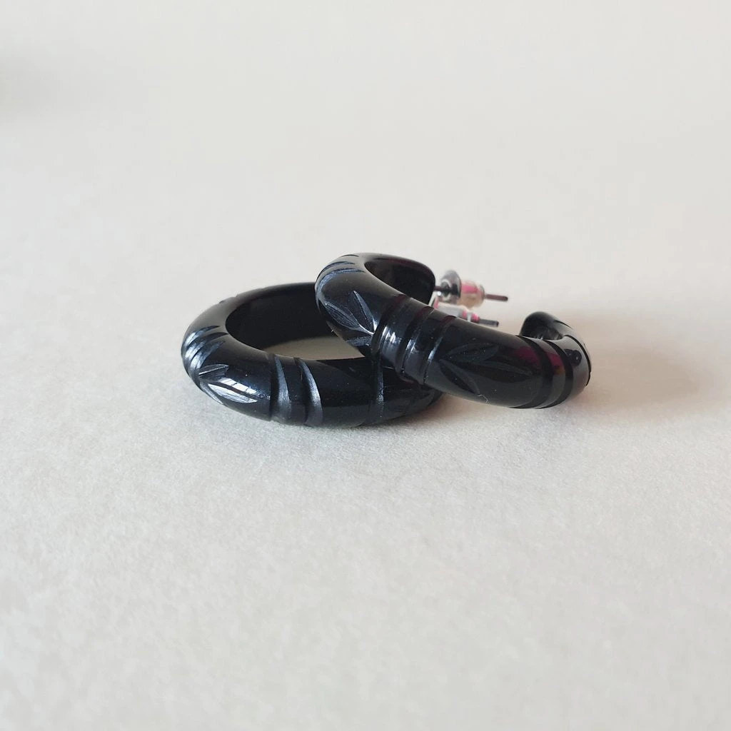 Gorgeous heavy carved tropical fakelite earrings! Our Etta earrings are crafted in rich Black resin with that authentic vintage feel you love.