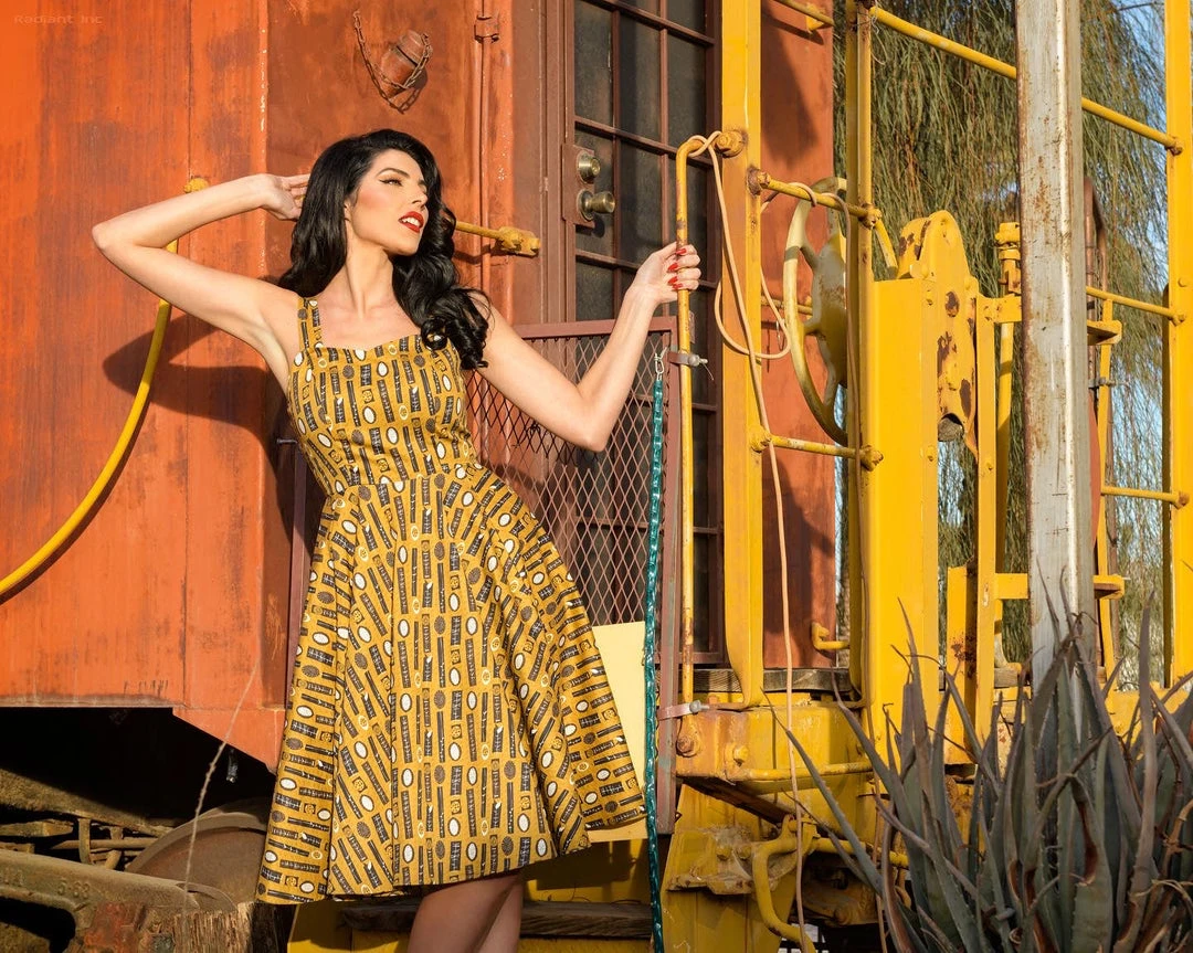 Take a trip to an island Oasis in this classic 1950s Shaheen inspired style made of custom printed high quality stretch sateen cotton in a full circle skirt.