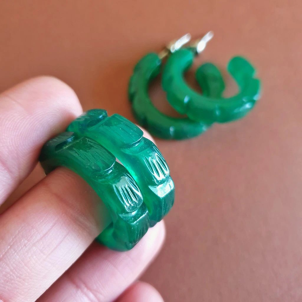 Beautiful carved resin earrings for an authentic look! Inspired by a love of cacti & succulents! Each pair coordinates with the matching chunky carved cactus bangle to create a classic vintage finish to your outfit.