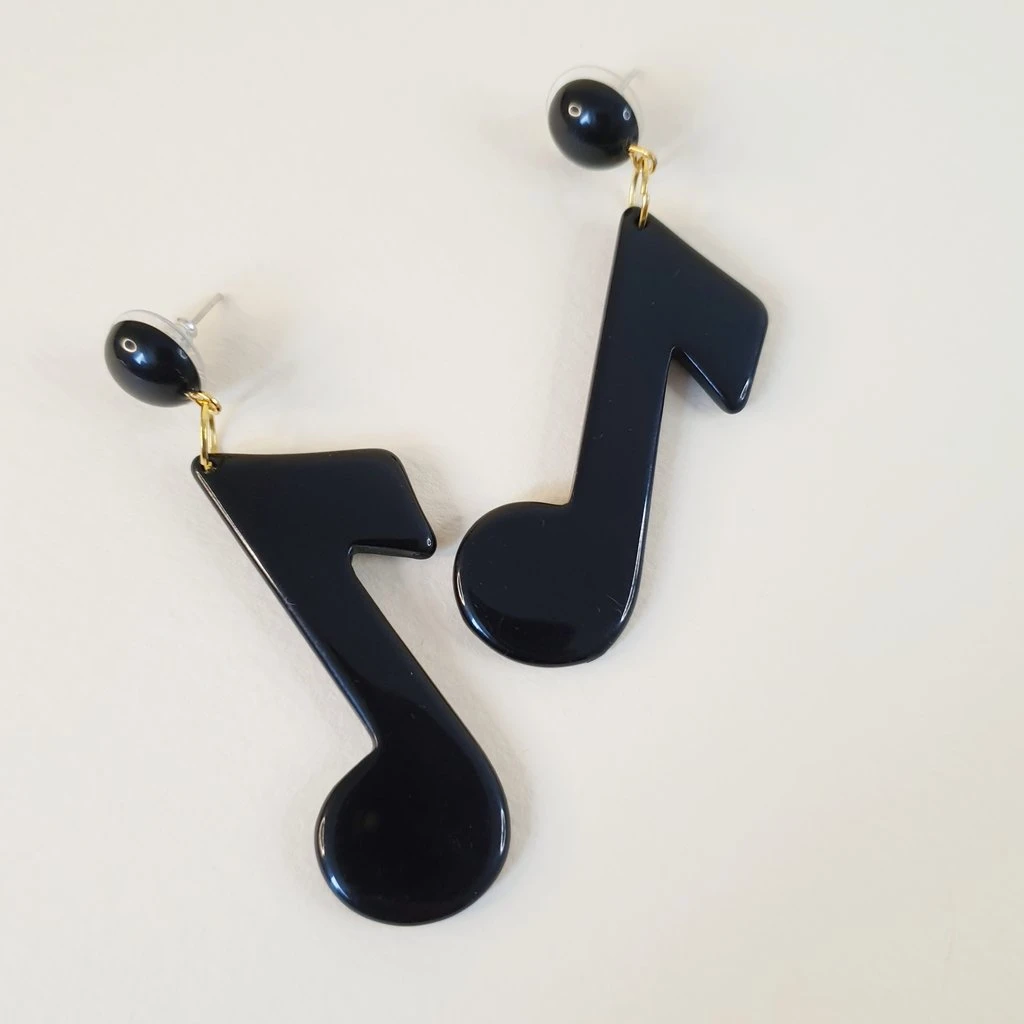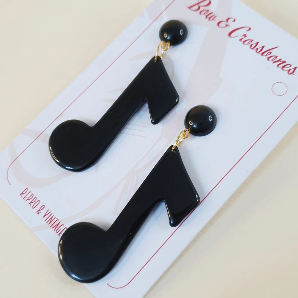 Say Hello Dolly! The stunning resin Dolly Music Note Earrings in Black. Gorgeous charms measuring 5cm x 3.2cm x 3mm mounted on a matching 11mm stud top!