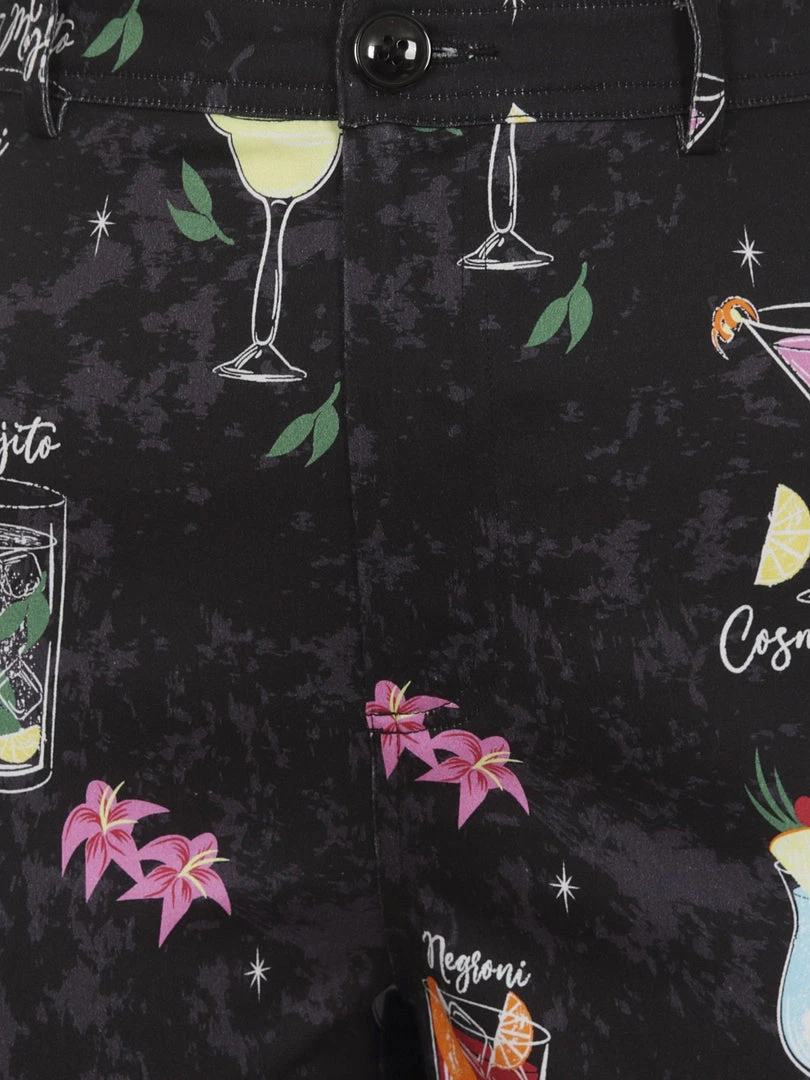 Mix it up with the Maddie Cocktail Menu Trousers! She’s a high-waisted, slim-leg style, with button and zip closure at the front and two large patch pockets at the back. She features the glamourous bespoke print of mouth-watering cocktails, like Blue Hawaiis, Cosmopolitans and Margaritas, on a classic black cotton sateen fabric. Pair these stunning cigarette pants with the Lorna Cocktail Menu Bolero for a great day to night look!