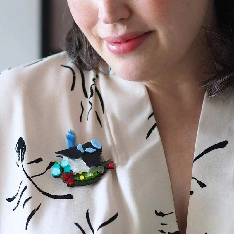 Each piece is made from laser-cut and layered resin, hand assembled, hand painted and released in limited quantities. As all of our designs are lovingly glued, assembled and painted by hand there can be fingerprint marks and very slight variations and blemishes from piece to piece. Due to the hand-mixed nature of the resins in our designs, it is also common and normal to find tiny flecks or bubbles in the resin layers. All in all, this just makes each piece as special and unique as you are.