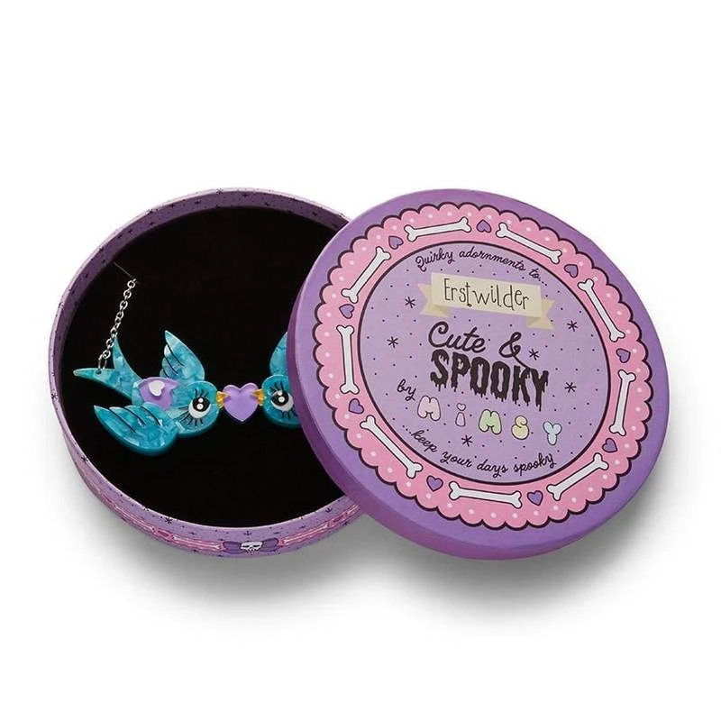 Fly into Halloween with this classic tattoo design necklace, featuring gorgeous colourful resins and hand-assembled details that just scream ‘Erstwilder X Mimsy’!