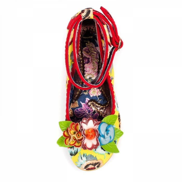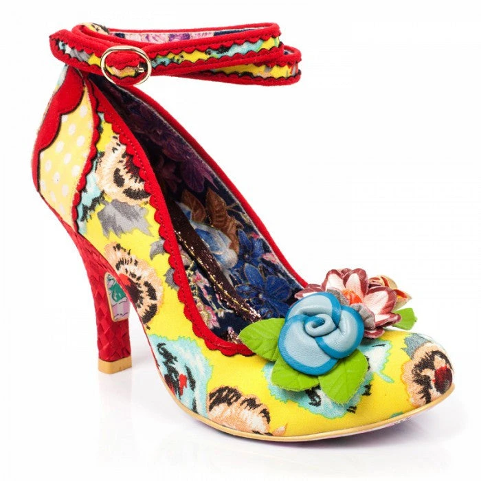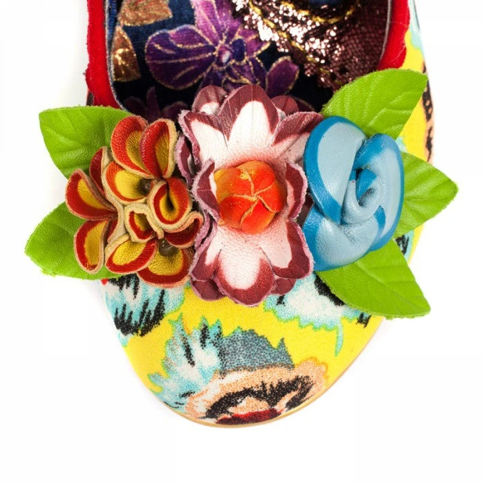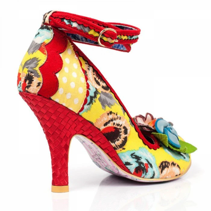 These fabulous floral fancies are the ultimate spring/summer heel, featuring a fabric, floral upper with a polka dot and scalloped detail. A woven heel, buckle fastening ankle strap and PU flower embellishments.