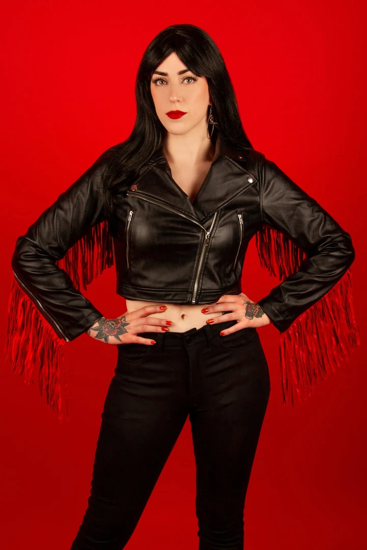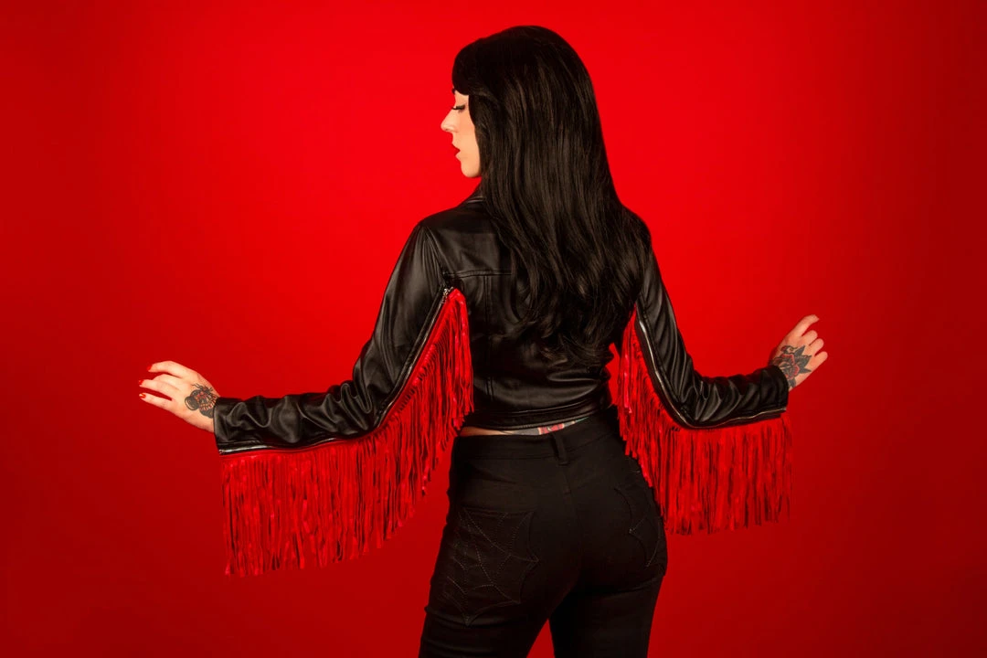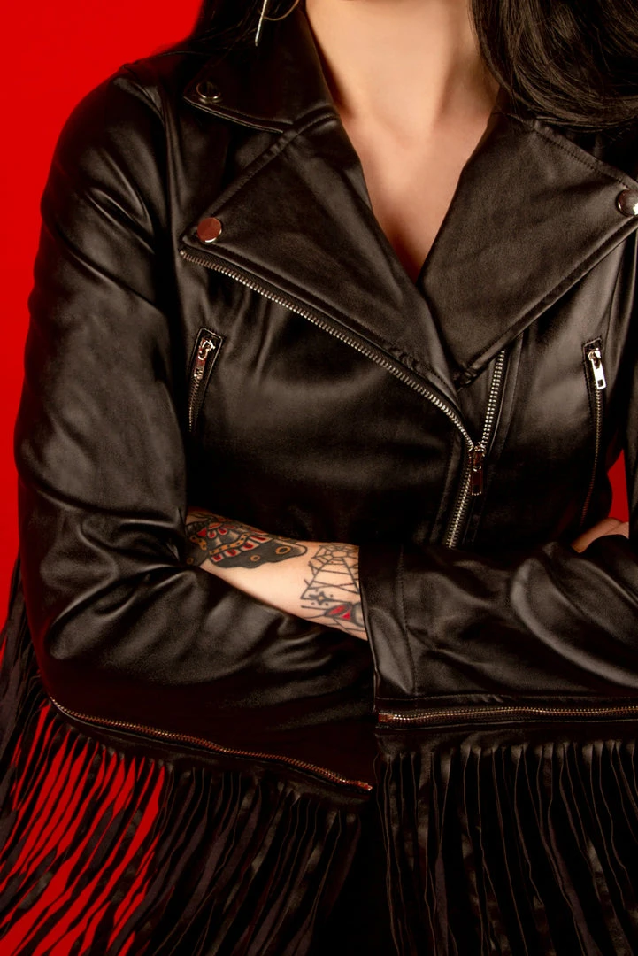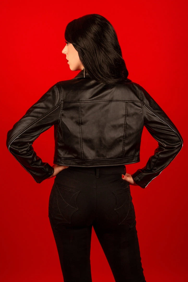 Cropped at the waist and made of vegan leather, the Viper Jacket is that lil’ bit of badassery every pinup needs.