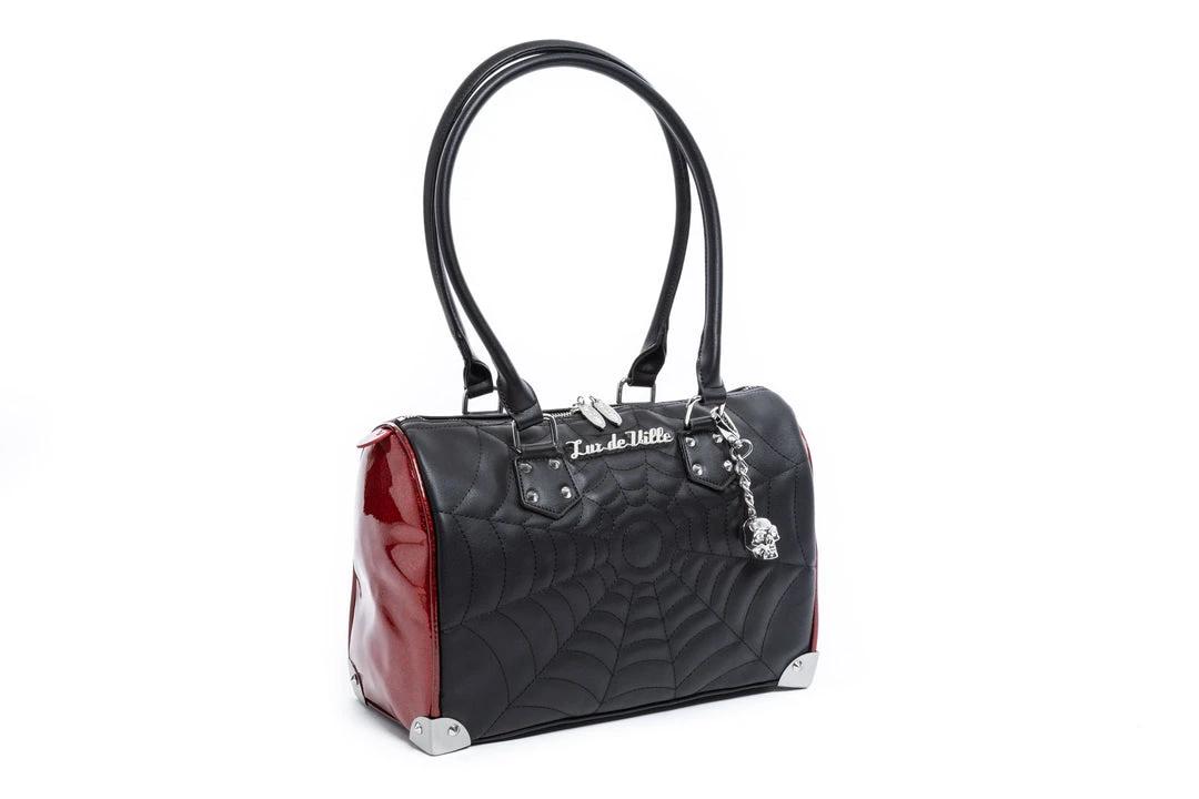 Featuring spider web stitching on the front, tuck and roll stitching on the back, metal frame corners and a detachable skull bauble………perfect for a very late date.