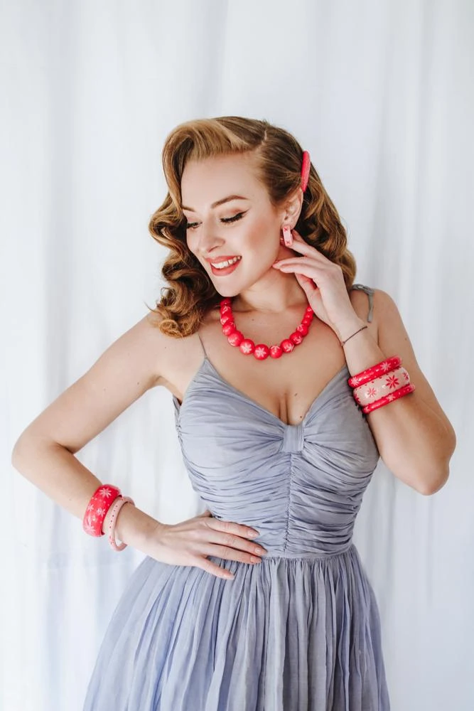 Bursting with colour, the Raspberry Carved Drop Hoop Earrings are a beautiful addition to your pinktastic 1950s outfit. The delicate petal carvings mixed with the vibrant berry colour means Raspberry is ideal for both fruity and floral accessorising, or keep it simple with its ice-cream parlour pal, Ripple, for a scrumptious vintage style combo.