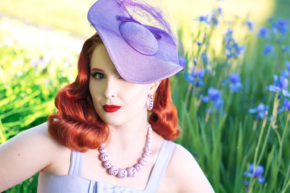 Clematis is a light purple highlighted with richer purple carvings to complete a beautiful, 1950s style pastel fakelite masterpiece.