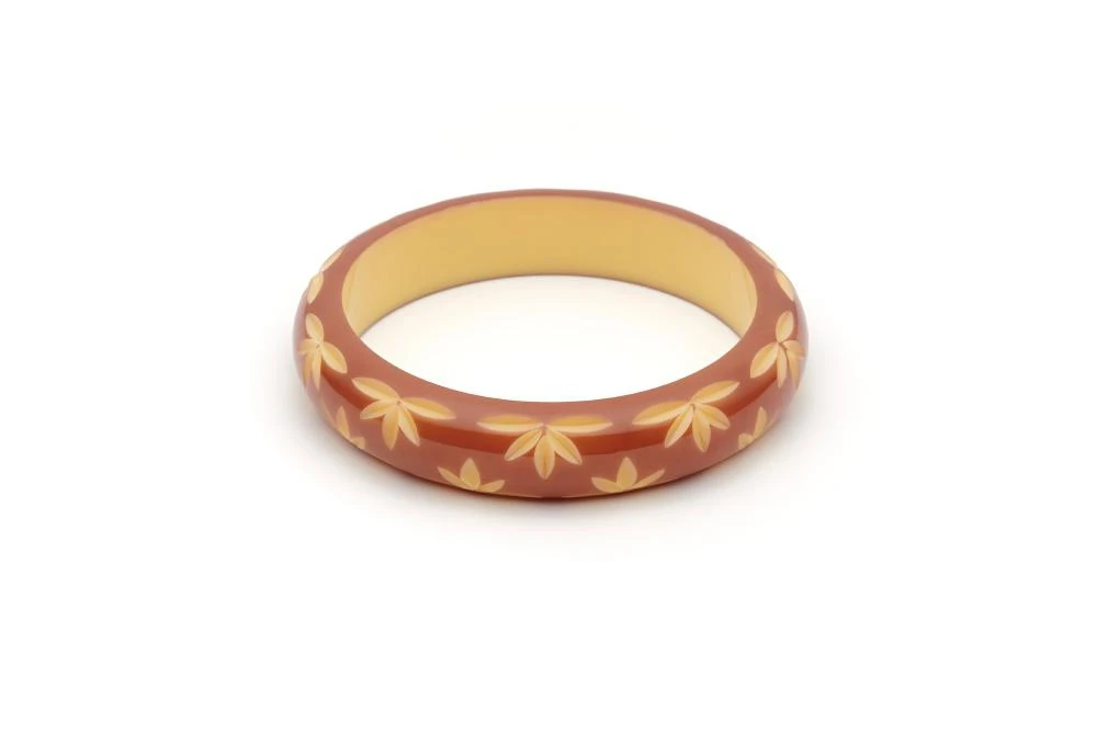 Deliciously vintage inspired, the Midi Café Carved Bangle is a new edition to the Duotone collection to perk up your stack. Inspired by the popular Western styles of the 1940s, we love stacking Café with its (howdy) partner Lait, and a dash of Jade, for the perfect “riding off into the sunset” fakelite stack.