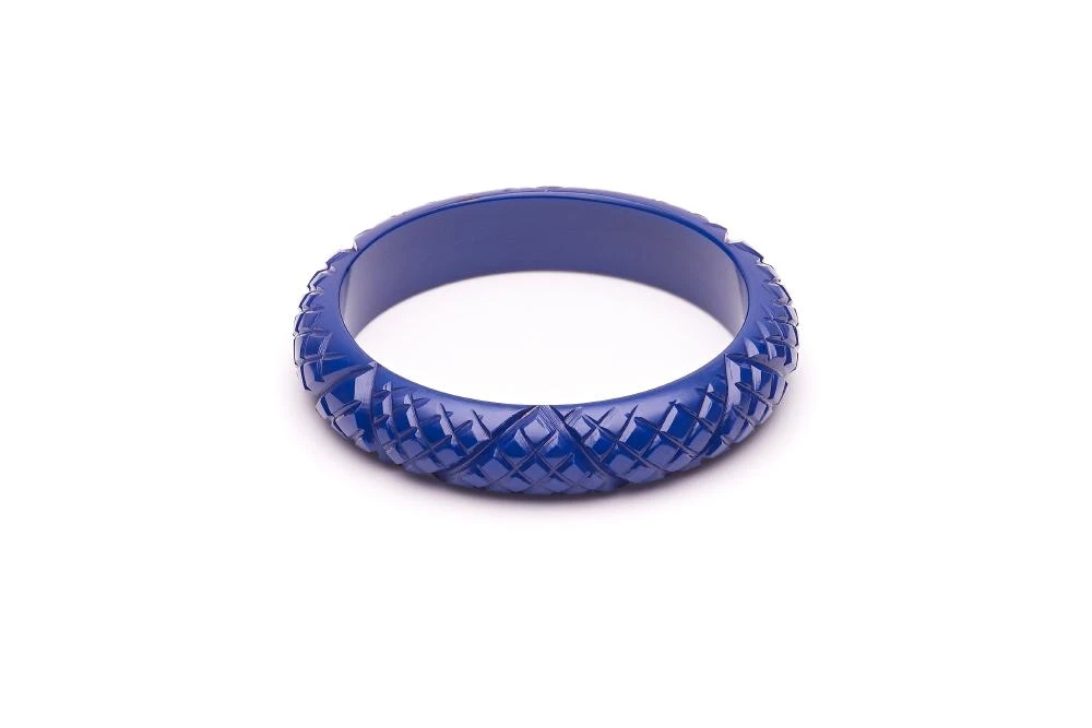 This vibrant Indigo Heavy Carve Fakelite bangle brings a deep pop of colour to set off any outfit, morning, noon or night.