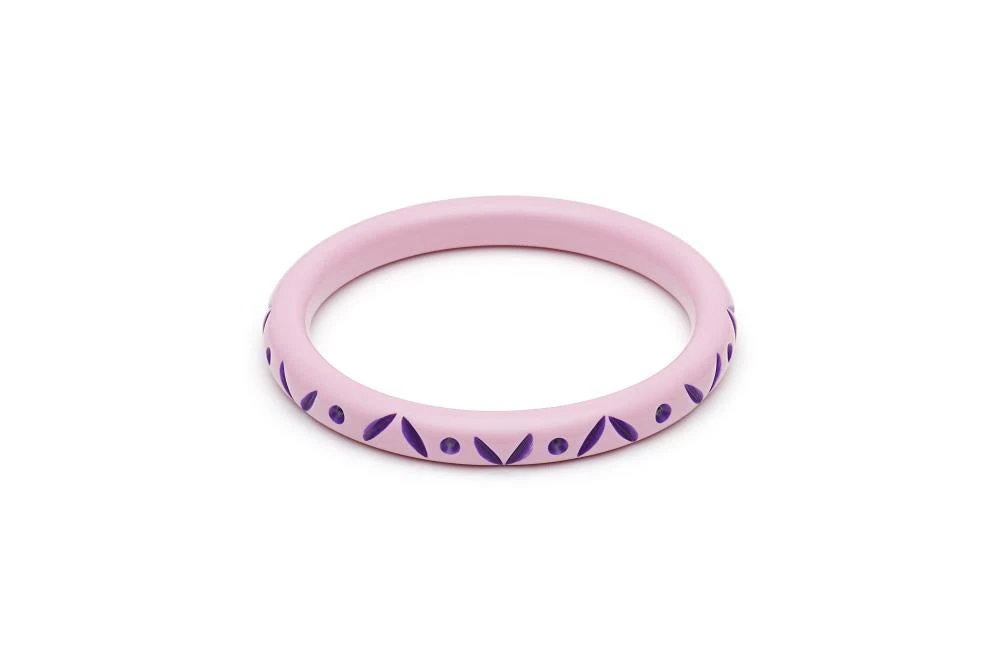 With the sweet smell of honeysuckle clinging in the air, we are all over imagining how Narrow Clematis Carved Bangle stacks together to complete your vintage inspired outfit.
