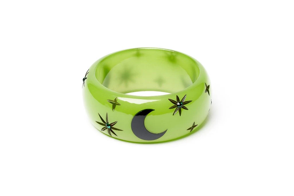 Serpents have long been associated with the moon. A bright green with moon carvings, the Wide Serpent Moon Duchess Bangle is both eye-catching and jaw-dropping – perfect for Halloween! Inspired by the popular luminous jewellery of the early 20th century, Serpent Moon is a nod to the glow in the dark craze! Charge the jewellery under some lights and get glowin’!