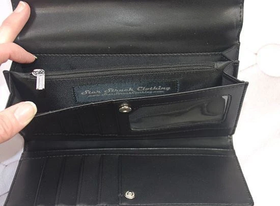 This wallet features an inside coin holder, card holders and bill holder.