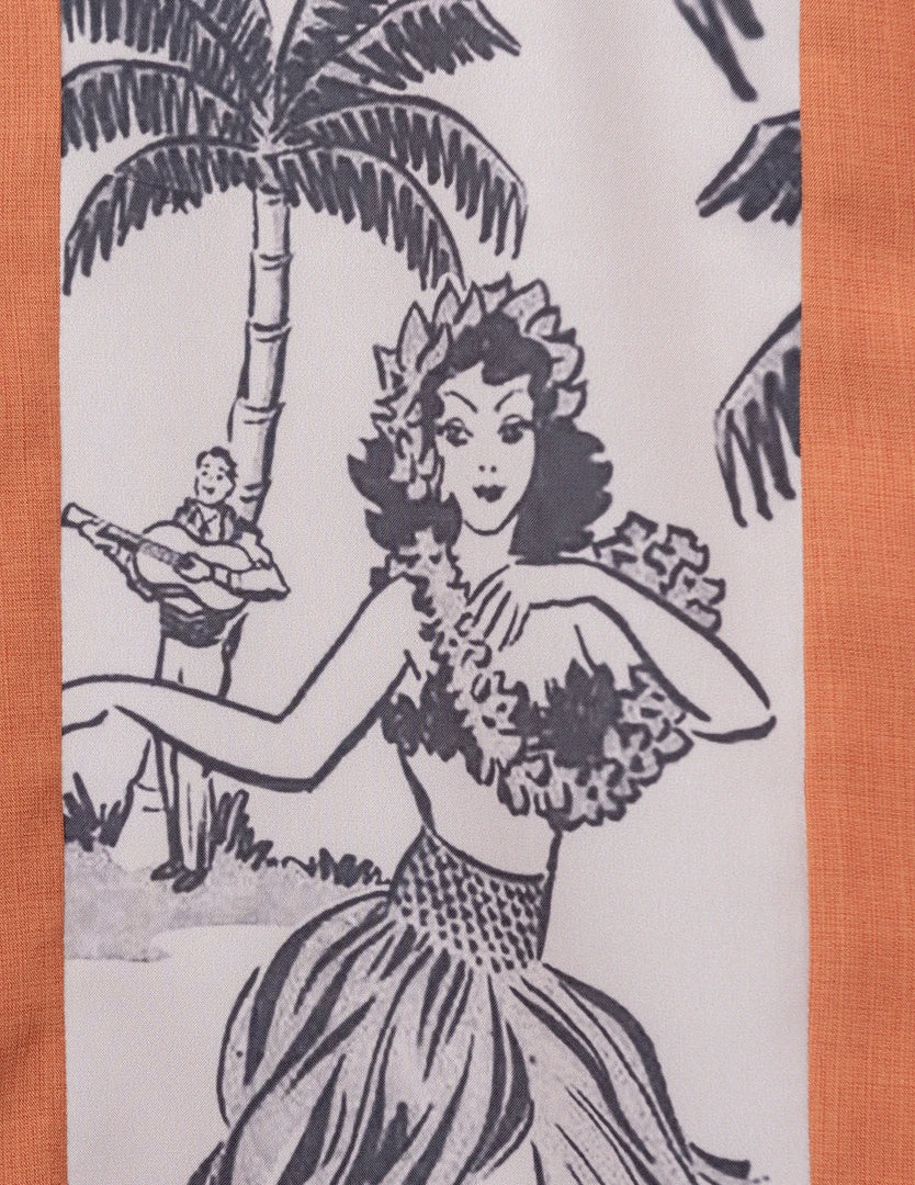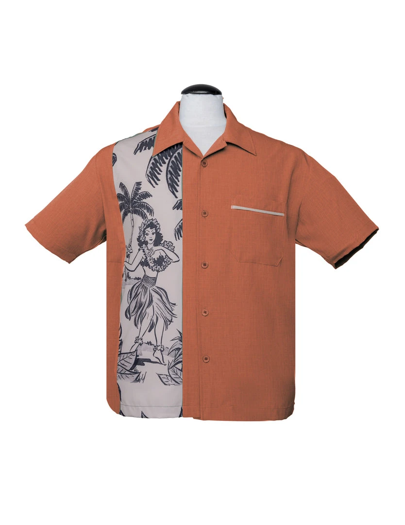 Meet Ms. Leilani, the hula girl of your dreams! The sketched art is sublimated onto our classic single panel bowling shirt, with contrast detail on the pocket.