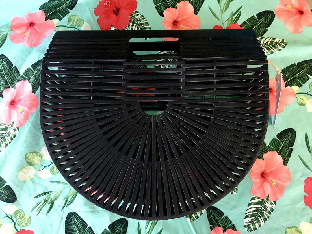 This handmade bamboo purse perfectly finishes off a classic tiki look.