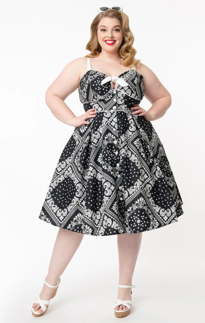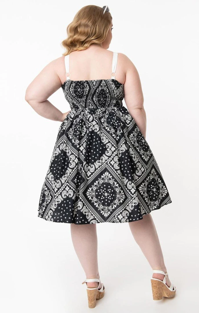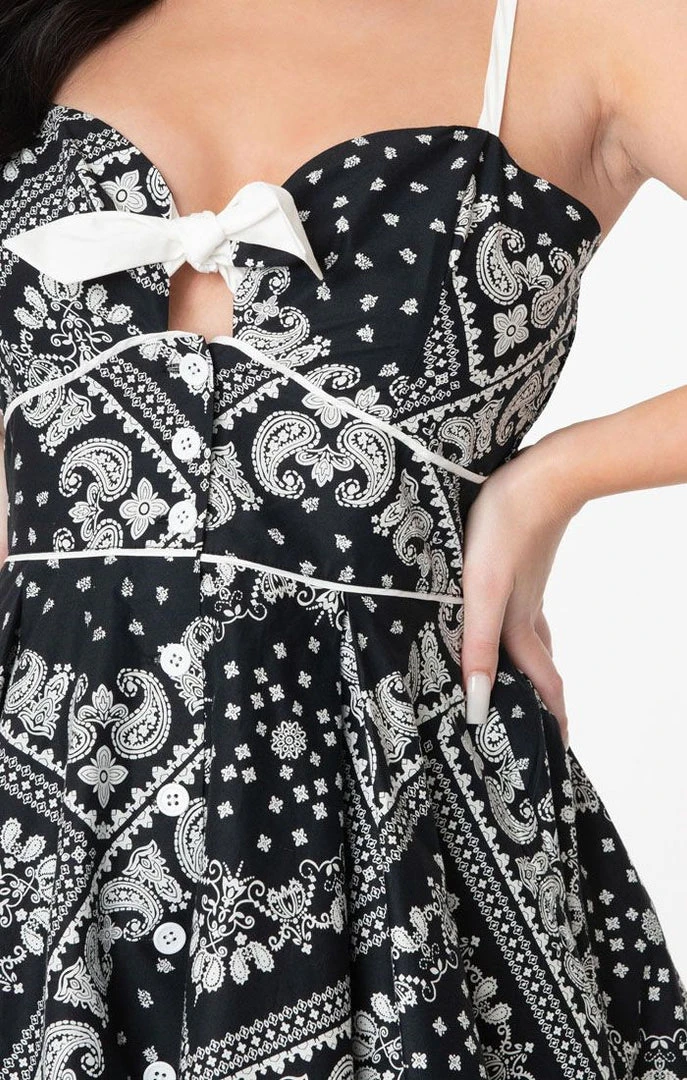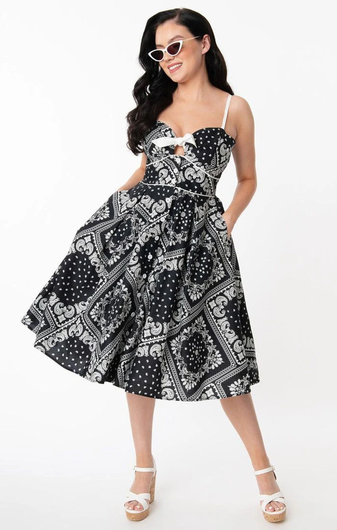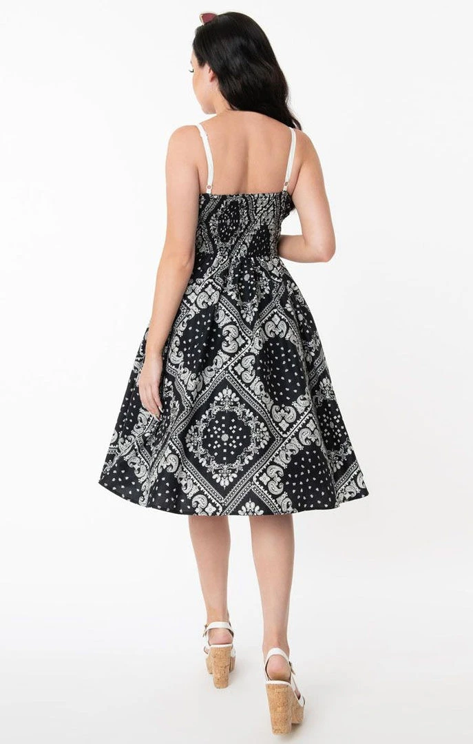 Unique Vintage Rockie Swing Dress – Black Paisley Print