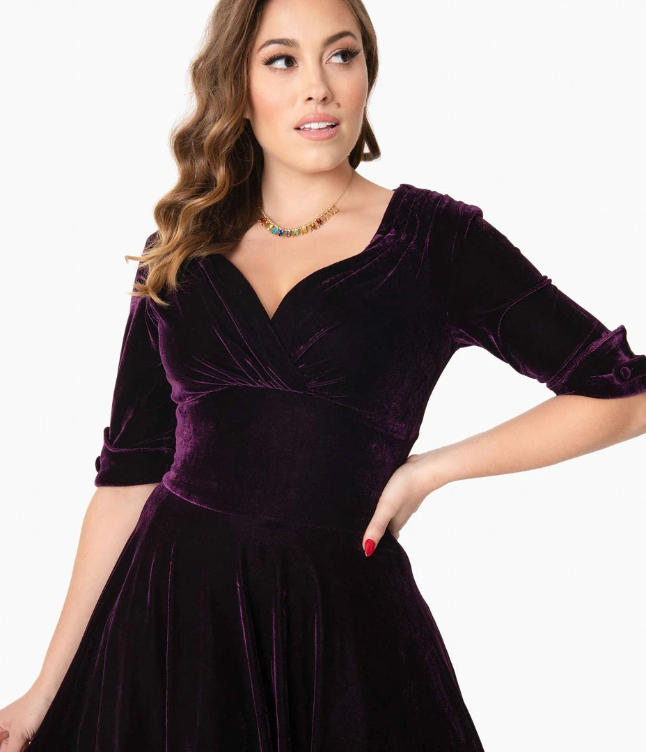 Unique Vintage Velvet Delores Swing Dress – Purple